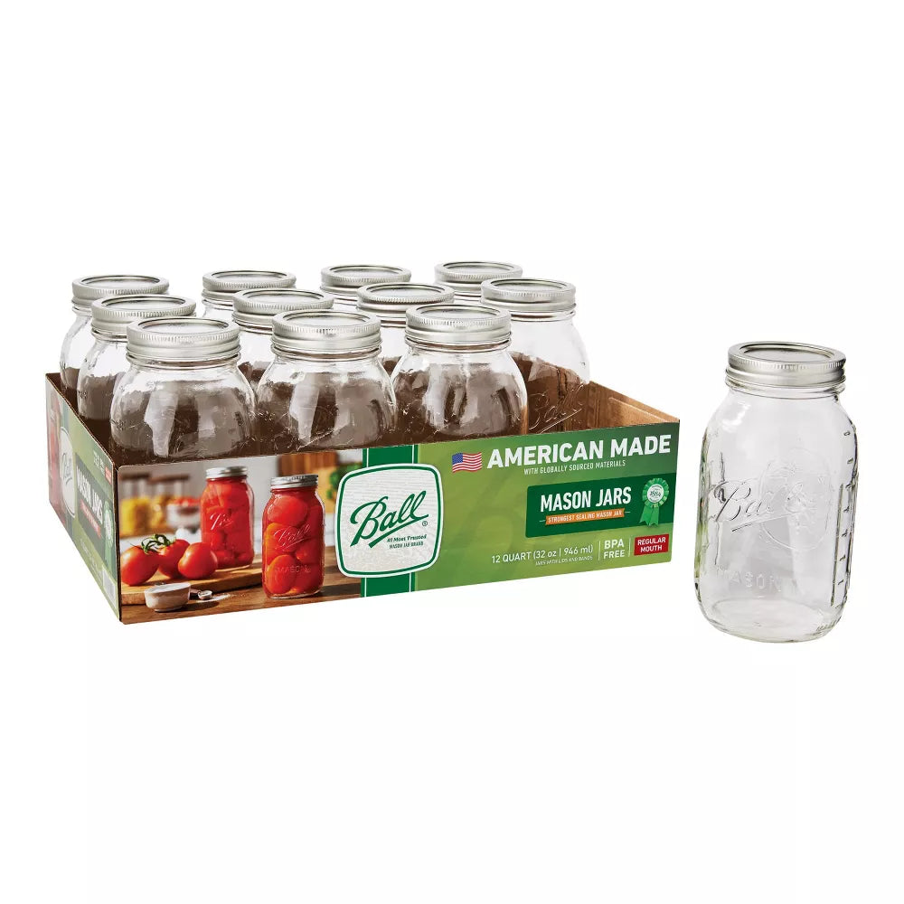 • Includes 12, 32oz Regular Mouth jars with lids and bands