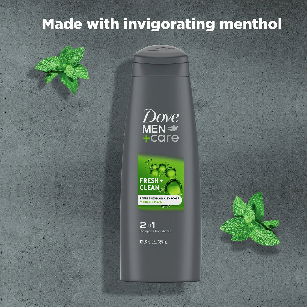 Dove Men+Care Fresh Clean 2-in-1 Shampoo and Conditioner with Caffeine and Menthol, 12 fl oz