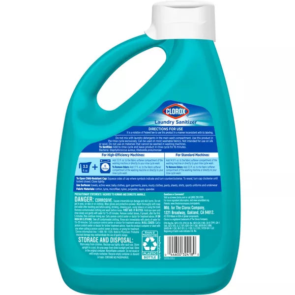 KILLS 99.9% OF BACTERIA**: Clorox® Laundry Sanitizer kills 99.9% of bacteria on your laundry while leaving a light and refreshing scent; Pack may vary