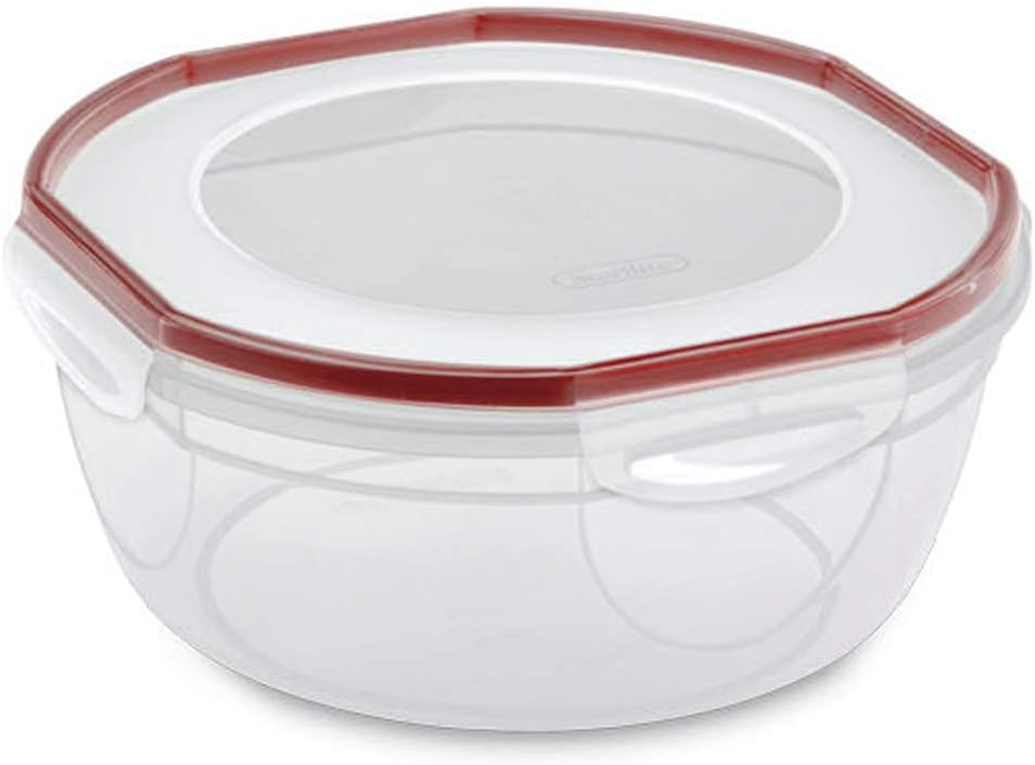 Take your favorite foods to-go with the Sterilite Ultra•Seal™ 4.7 Quart Bowl. It features a gasket and four latches in the lid that create an airtight and watertight seal to keep food fresh and prevent liquids from leaking. Ultra•Seal™ bowls stack securely when in use and store efficiently when not in use. This bowl is the ideal solution for storing, transporting and serving bigger portions of salads, snacks, desserts and more. Ultra•Seal™ containers are freezer, microwave and dishwasher safe, as well as BPA-free and phthalate-free. Its clear stylish design can go from fridge to table, for party or everyday serving solutions. The overall assembled dimensions of this item are 10 1/4" L x 10 1/4" W x 4 3/4" H.