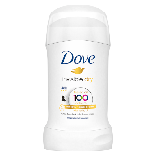 Dove Invisible Dry - proven to leave no white marks on 100 colours, whilst offering 48hr protection and underarm care.